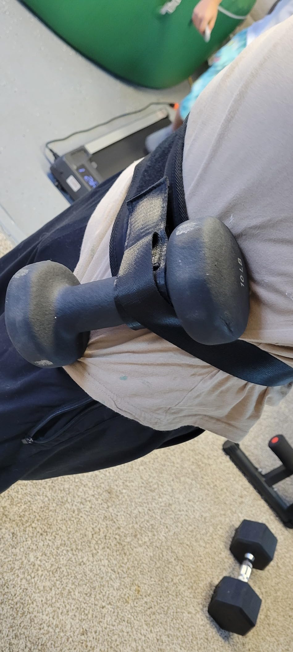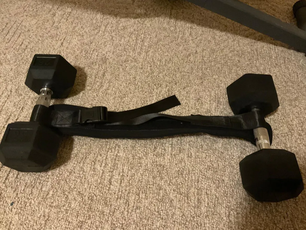 No fumbling with barbells. No dragging a heavy machine across the floor. Loop the strap through your weight, press the Velcro flat, snap the buckle, and start your set. That's it.