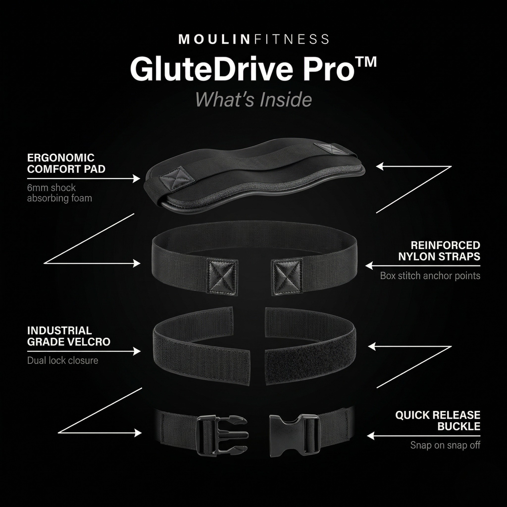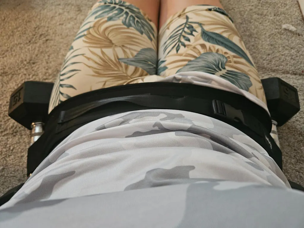 The 6mm ergonomic comfort pad distributes weight evenly across your hips so you feel pressure where it belongs. On your glutes. Not grinding into bone.