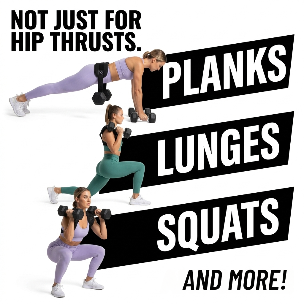Absolutely. The belt works for glute bridges, weighted squats, lunges, dips, planks, curtsy lunges, and more. Drape it across your shoulders for squats and lunges or keep it on your hips for bridges and thrusts. One belt replaces multiple pieces of equipment.