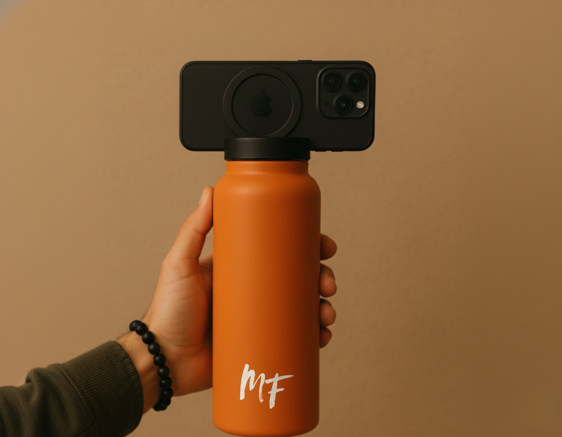 Your bottle now doubles as a magnetic phone holder. Perfect for the gym, work, or watching videos anywhere.